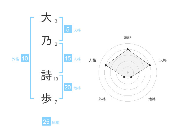 大乃 詩歩さんの天格は5画の4点!
