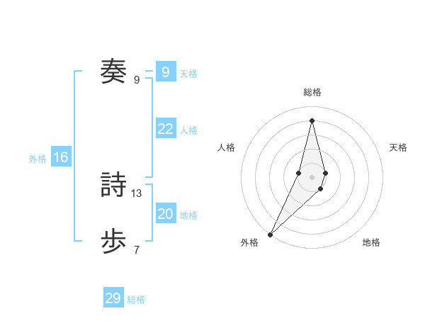 奏 詩歩さんを姓名の画数から五運を鑑定