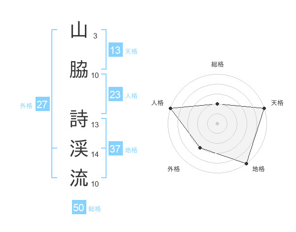 山脇 詩渓流さんを姓名の画数から五運を鑑定