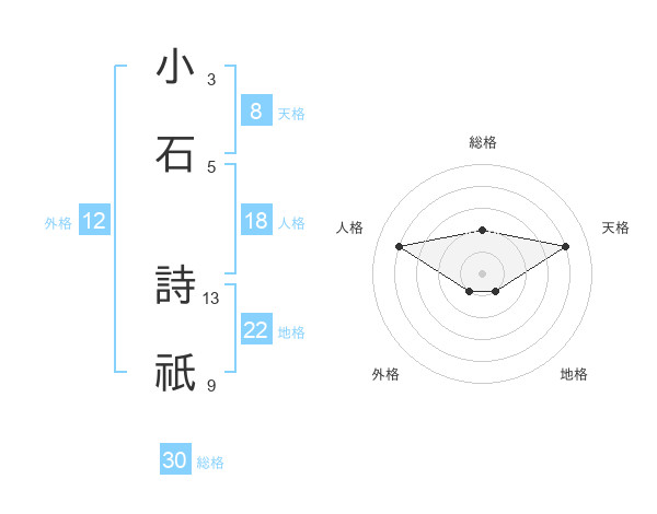 小石 詩祇さんの総格は30画の2点!