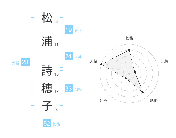 松浦 詩穂子さんを姓名の画数から五運を鑑定