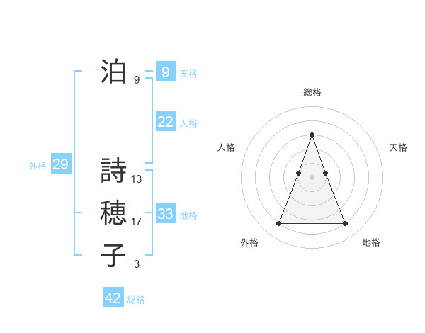 泊 詩穂子さんの総格は42画の3点!