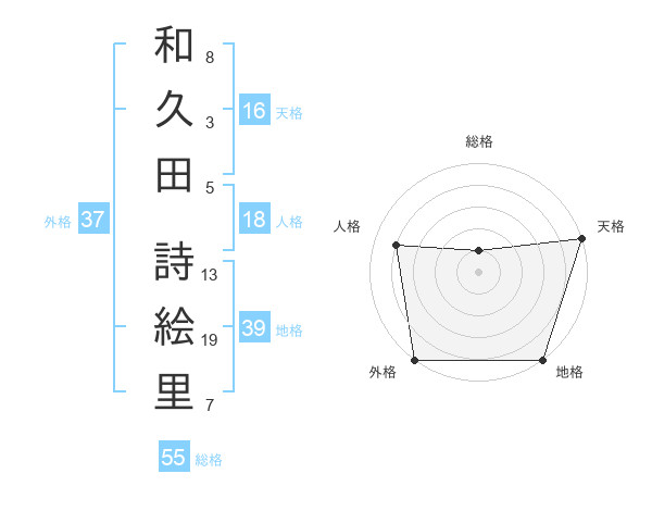 和久田 詩絵里さんを姓名の画数から五運を鑑定