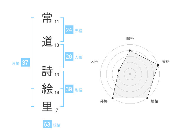 常道 詩絵里さんを姓名の画数から五運を鑑定