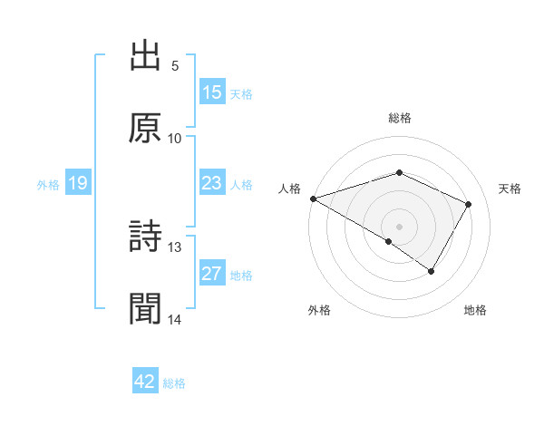 出原 詩聞さんの天格は15画の4点!