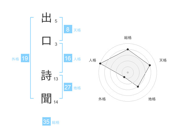 出口 詩聞さんを姓名の画数から五運を鑑定
