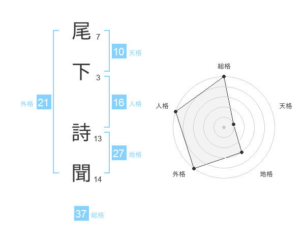 尾下 詩聞さんを姓名の画数から五運を鑑定