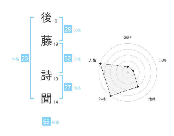 後藤 詩聞さんを姓名の画数から五運を鑑定