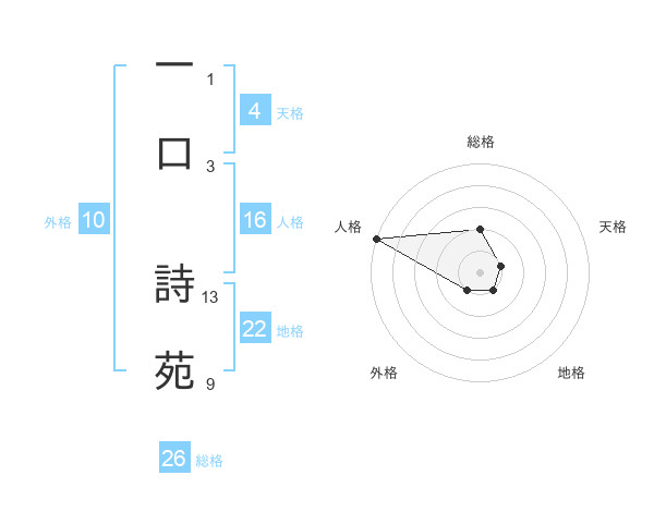 一口 詩苑さんの総格は26画の2点!