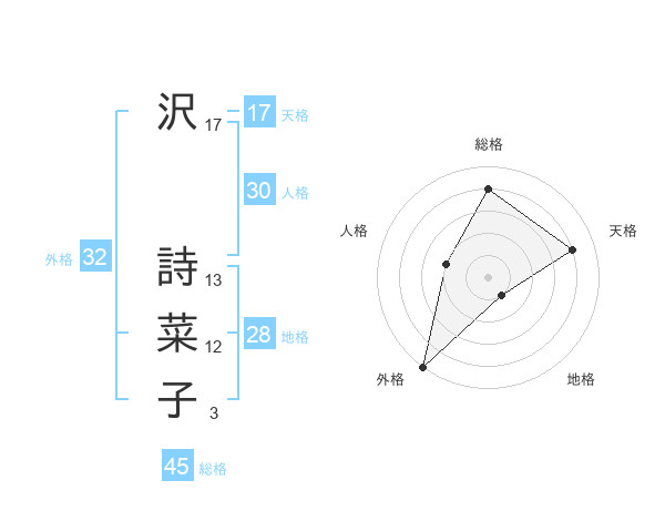 沢 詩菜子さんの天格は17画の4点!