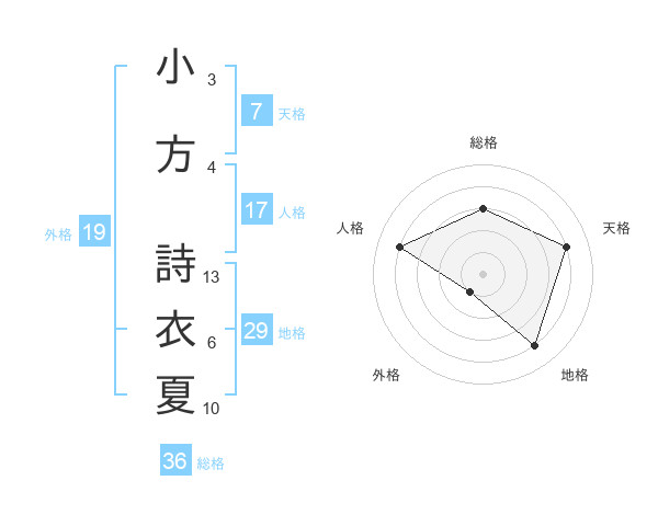 小方 詩衣夏さんを姓名の画数から五運を鑑定