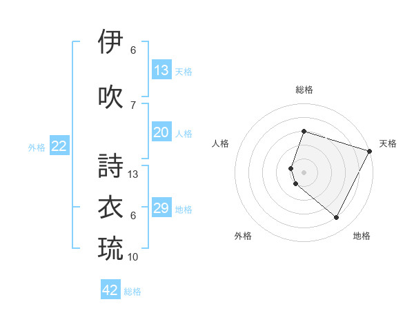伊吹 詩衣琉さんの外格は22画の1点!