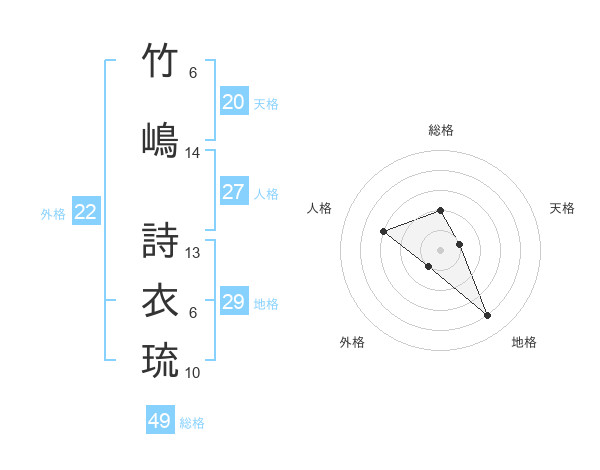 竹嶋 詩衣琉さんの外格は22画の1点!