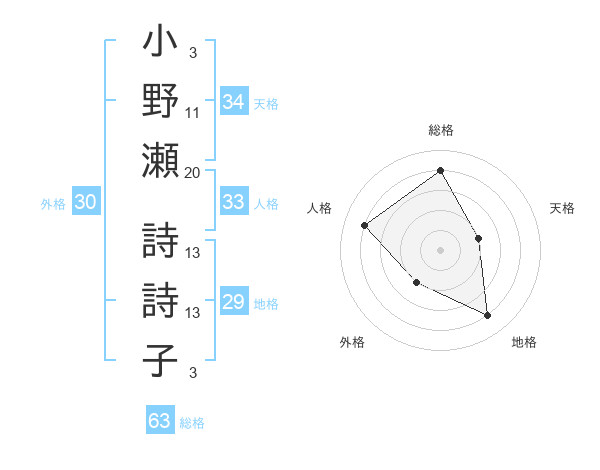 小野瀬 詩詩子さんを姓名の画数から五運を鑑定