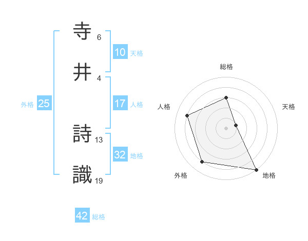寺井 詩識さんの総格は42画の3点!