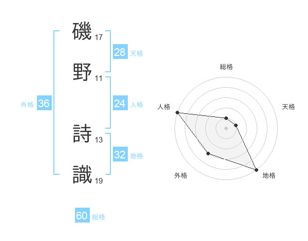 磯野 詩識さんを姓名の画数から五運を鑑定
