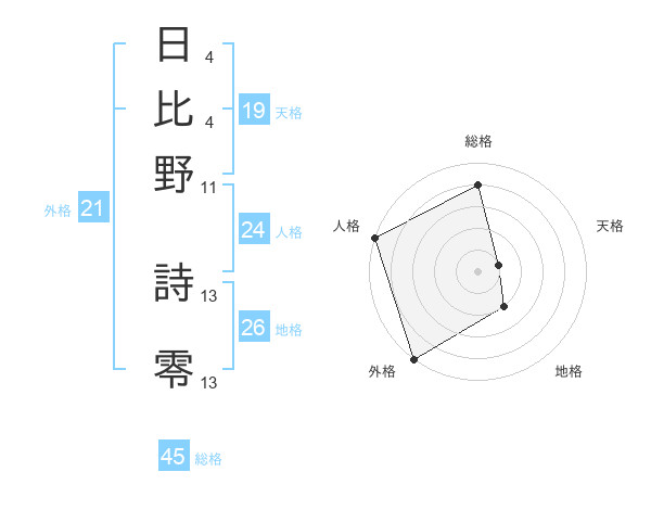 日比野 詩零さんを姓名の画数から五運を鑑定