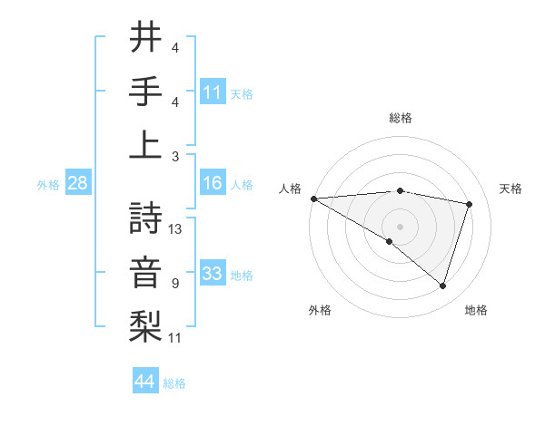 井手上 詩音梨さんの総格は44画の2点!