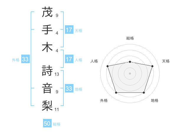 茂手木 詩音梨さんを姓名の画数から五運を鑑定