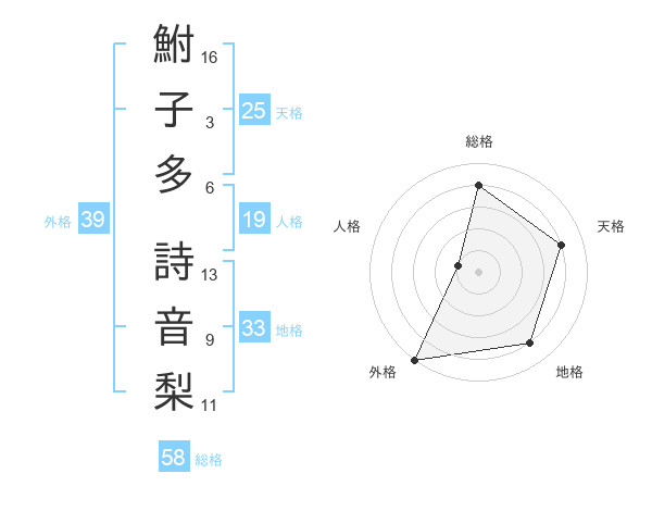 鮒子多 詩音梨さんを姓名の画数から五運を鑑定