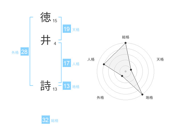 徳井 詩さんの総格は32画の5点!