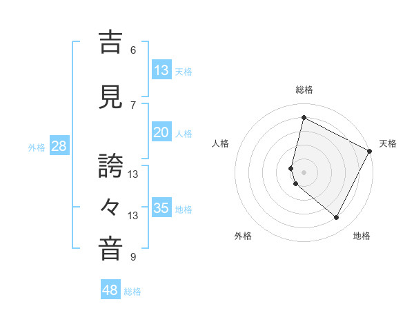 吉見 誇々音さんを姓名の画数から五運を鑑定