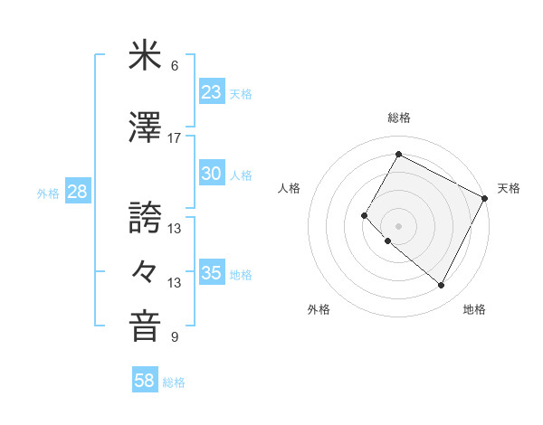 米澤 誇々音さんの総格は58画の4点
