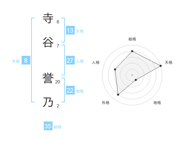 寺谷 誉乃さんを姓名の画数から五運を鑑定
