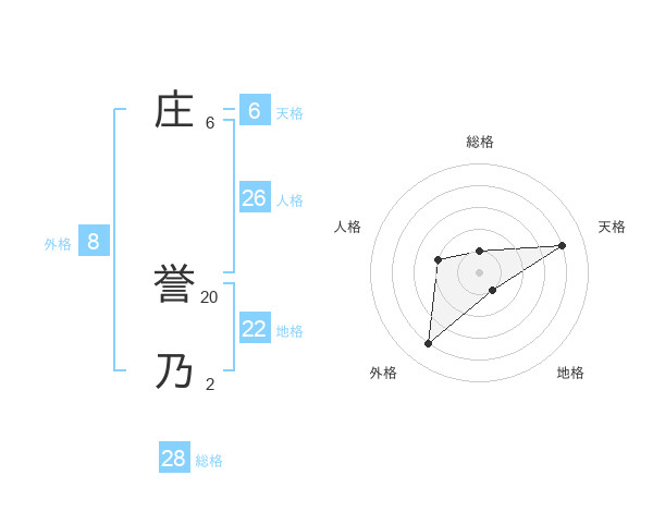 庄 誉乃さんを姓名の画数から五運を鑑定