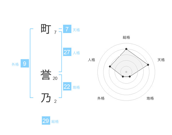 町 誉乃さんの総格は29画の4点!