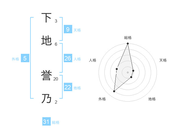 下地 誉乃さんを姓名の画数から五運を鑑定