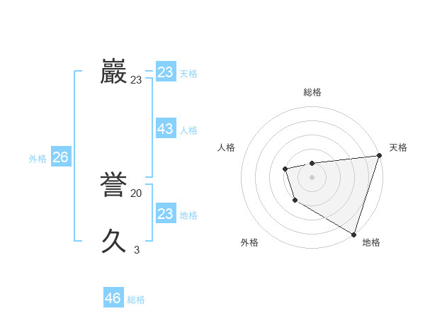 巖 誉久さんの天格は23画の5点!