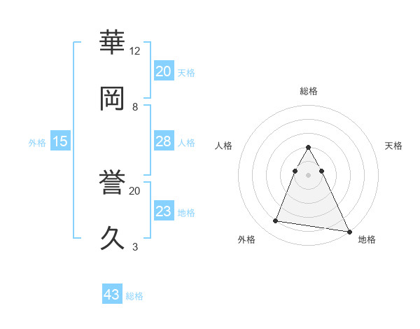 華岡 誉久さんを姓名の画数から五運を鑑定