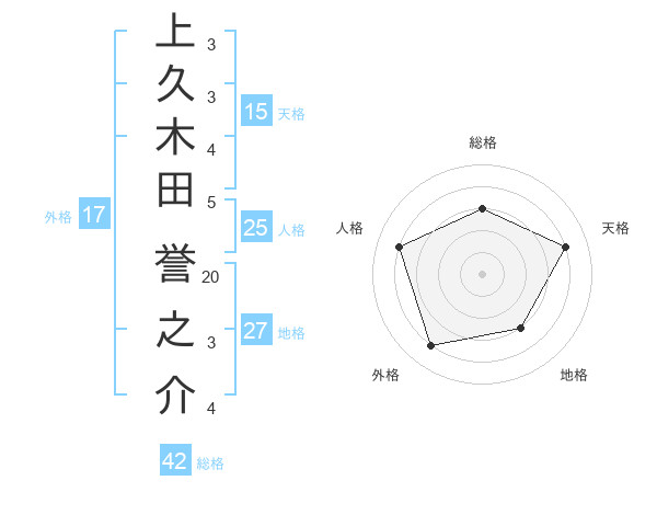 上久木田 誉之介さんを姓名の画数から五運を鑑定