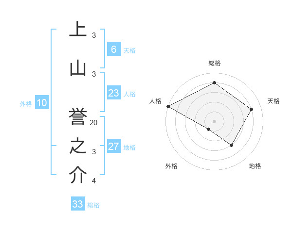 上山 誉之介さんを姓名の画数から五運を鑑定