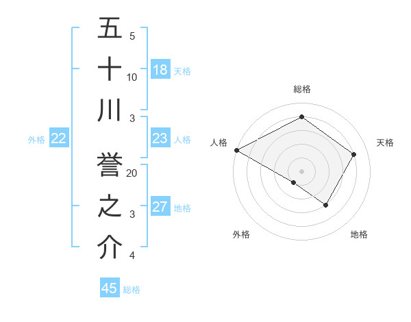 五十川 誉之介さんを姓名の画数から五運を鑑定