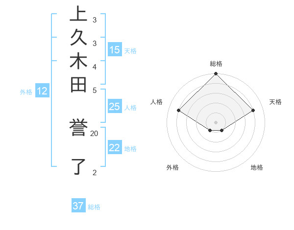 上久木田 誉了さんを姓名の画数から五運を鑑定