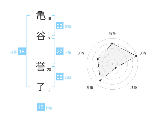 亀谷 誉了さんの総格は45画の4点!