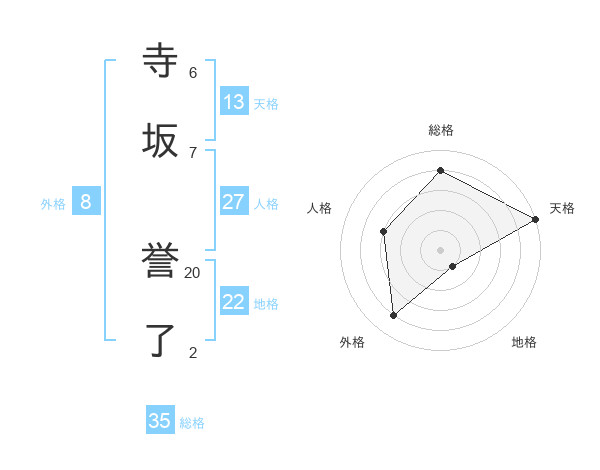 寺坂 誉了さんの天格は13画の5点!