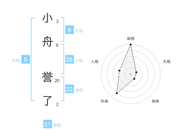 小舟 誉了さんを姓名の画数から五運を鑑定