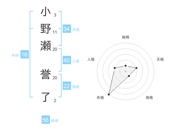 小野瀬 誉了さんの外格は16画の5点!