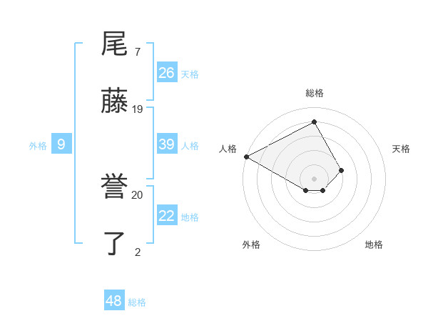 尾藤 誉了さんの総格は48画の4点!
