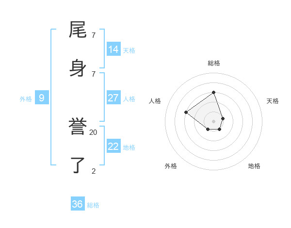 尾身 誉了さんの総格は36画の3点!