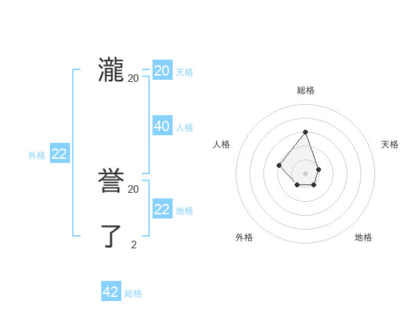 瀧 誉了さんの天格は20画の1点!