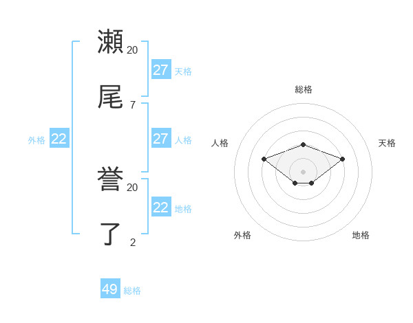 瀬尾 誉了さんを姓名の画数から五運を鑑定