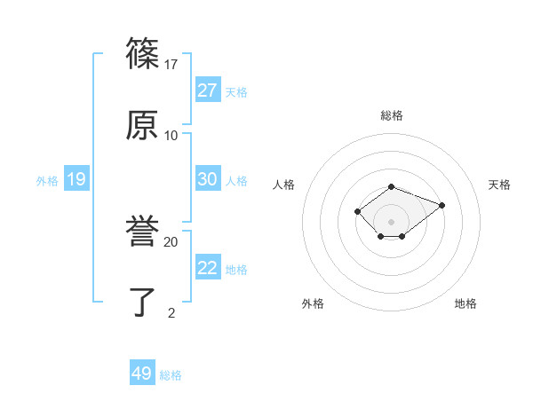 篠原 誉了さんの総格は49画の2点!