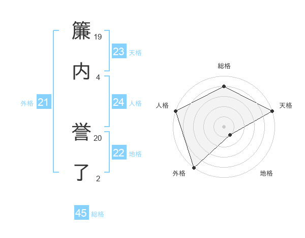 簾内 誉了さんを姓名の画数から五運を鑑定