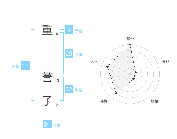 重 誉了さんの総格は31画の5点!