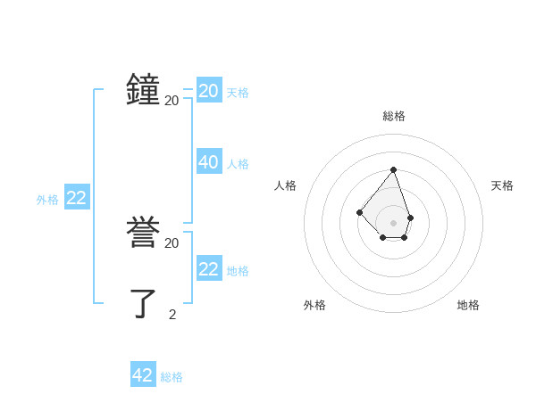 鐘 誉了さんの外格は22画の1点!