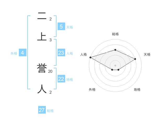 二上 誉人さんの天格は5画の4点!